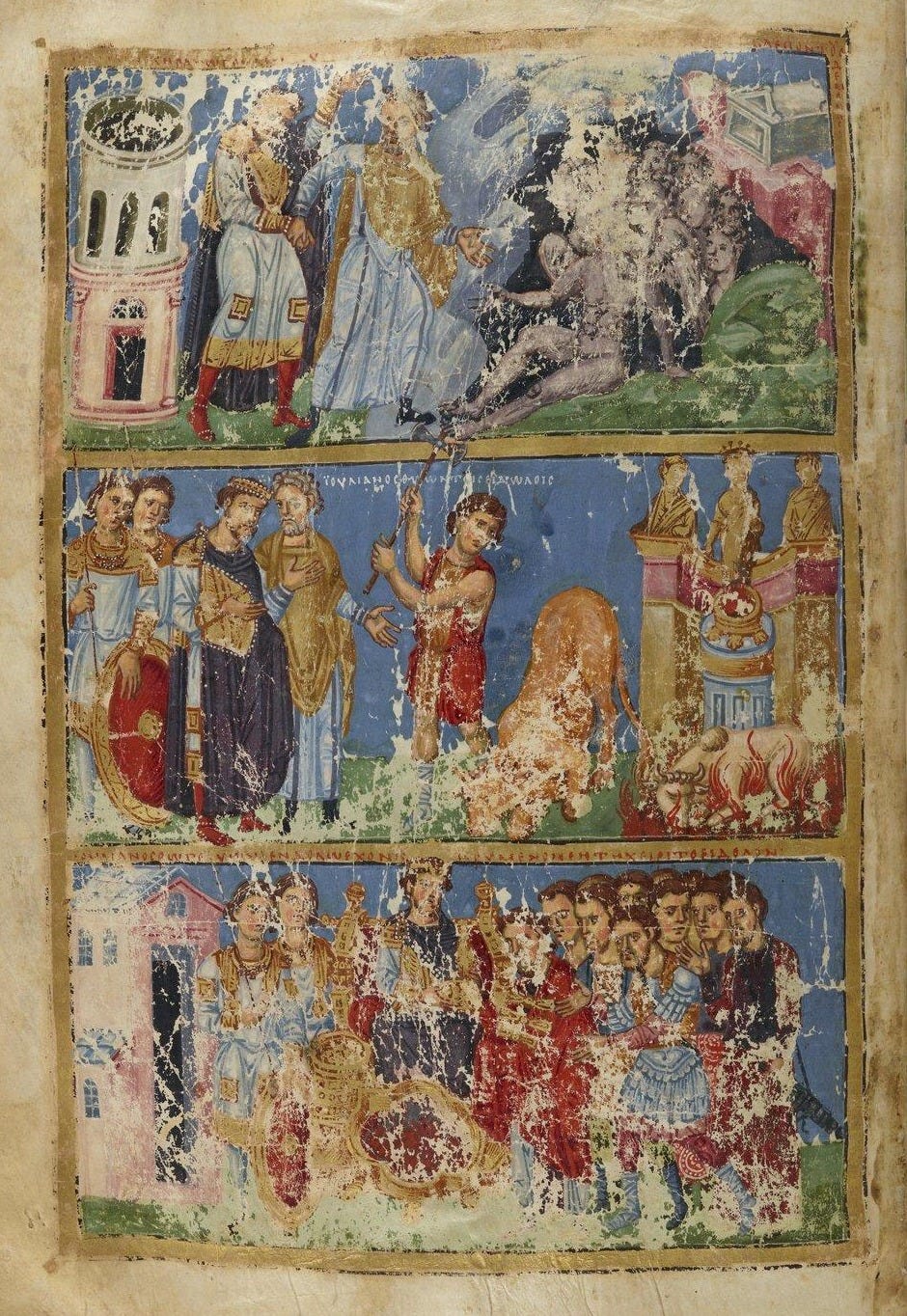— “Julian arresting a bishop and ordering sacrifices to the Roman gods.” Source: Wikipedia.
