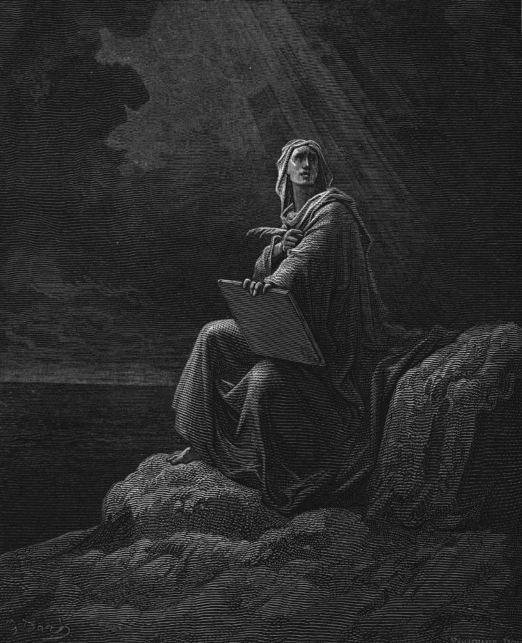 — St. John at Patmos (Rev. 1:9), ill. by Gustave Doré.
